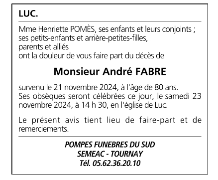 Décédé à Tarbes (65000, France) le jeudi 21 novembre 2024 à l'âge de 80 ans