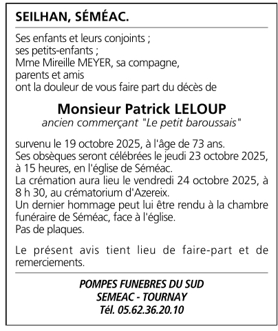 Décédé à Semeac (65600, France) le dimanche 19 octobre 2025 à l'âge de 73 ans