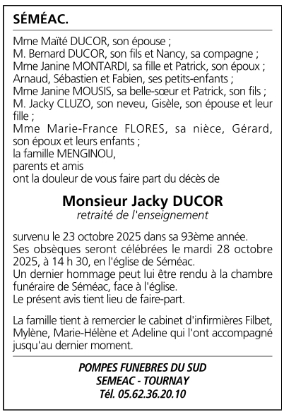 Décédé à Semeac (65600, France) le jeudi 23 octobre 2025 à l'âge de 92 ans