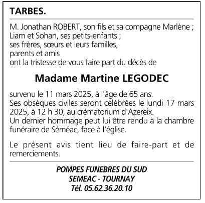Décédée à Tarbes (65000, France) le mardi 11 mars 2025 à l'âge de 65 ans