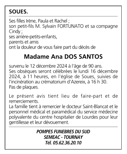Veuve de Monsieur José DOS SANTOS